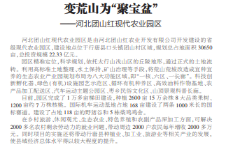 河北團山紅現(xiàn)代農(nóng)業(yè)園區(qū)是由河北團山紅農(nóng)業(yè)開發(fā)有限公司開發(fā)建設(shè)的省級現(xiàn)代農(nóng)業(yè)園區(qū),建設(shè)地點位于行唐縣口頭鎮(zhèn)團山村區(qū)域,規(guī)劃總占地面積30650畝,總投資規(guī)模22.33億元。