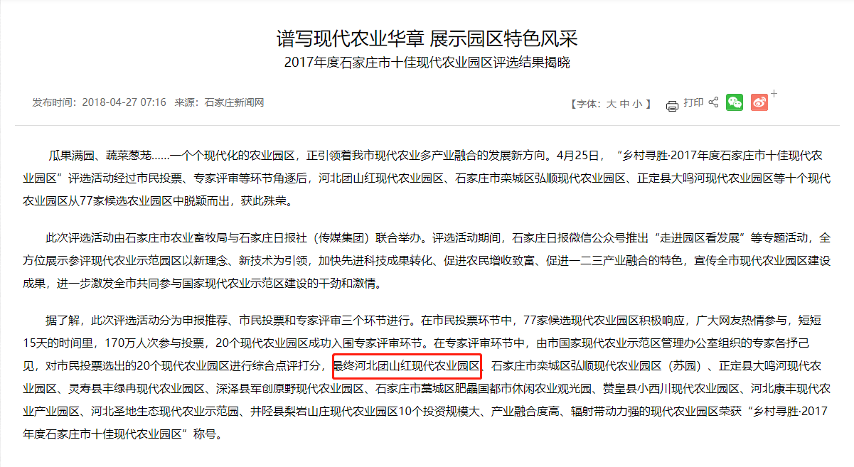 2017年度石家莊市十佳現(xiàn)代農(nóng)業(yè)園區(qū)評選結(jié)果揭曉
